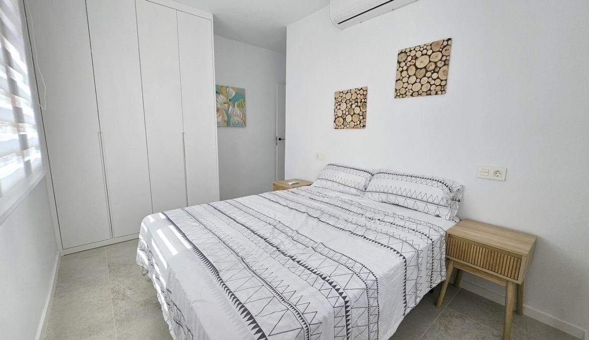 The icing on the cake is an exceptionally spacious 80m² terrace with patio furniture and a 6-person jacuzzi that can be used year-round. There are several bars/restaurants, as well as a pharmacy, fitness center, and medical center, all nearby. The center of Santiago de la Ribera is a 15-minute walk away, and Playa La Puntica in San Pedro del Pinatar is a 20-minute walk.