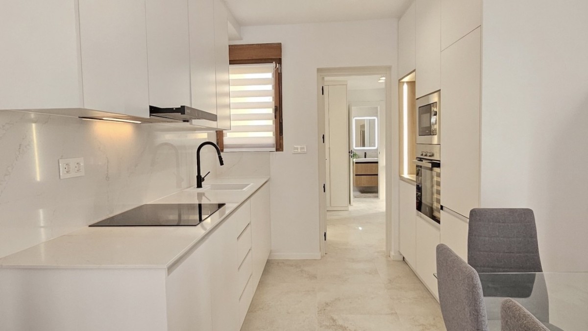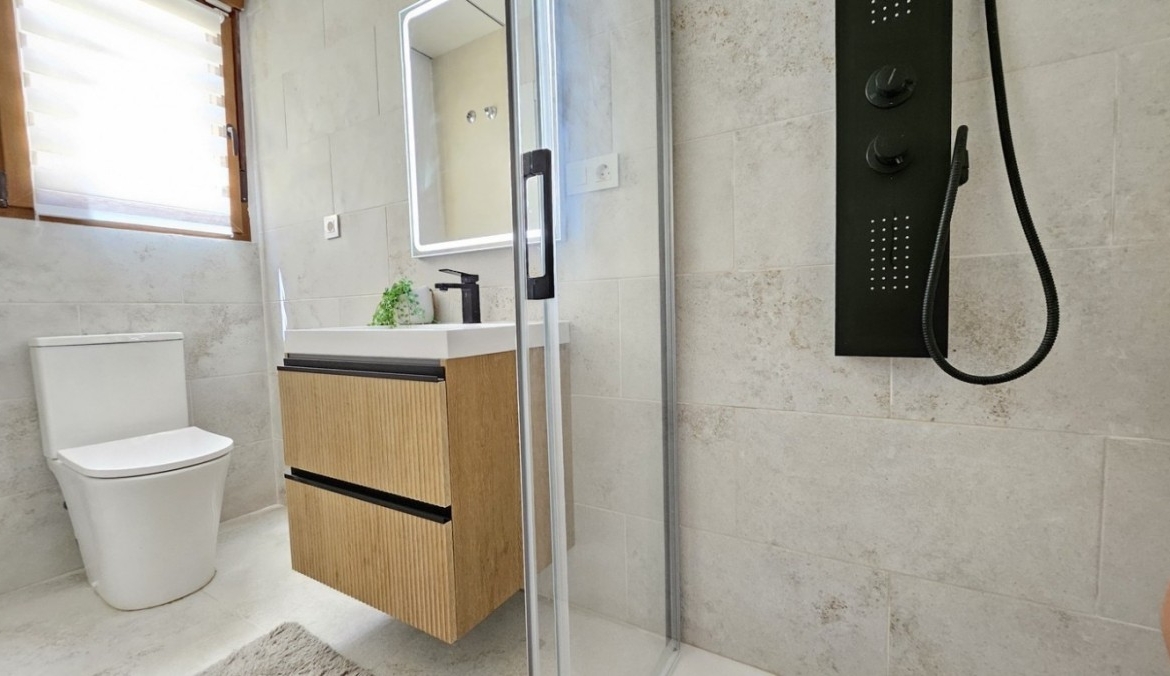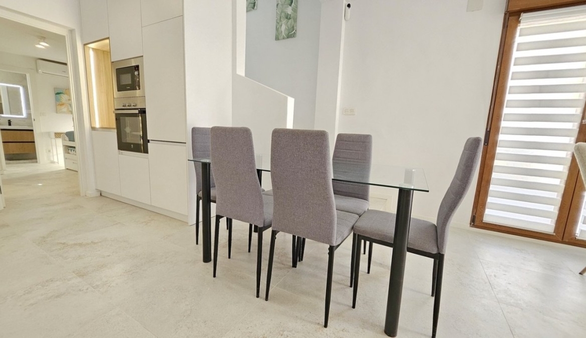 The semi-detached house with a spacious terrace has been completely renovated in a modern style and is furnished and ready to move in. This property has undergone a thorough renovation, including the replacement of all plumbing, electrical systems, carpentry, flooring, bathroom fixtures, etc., under the supervision of an architect.