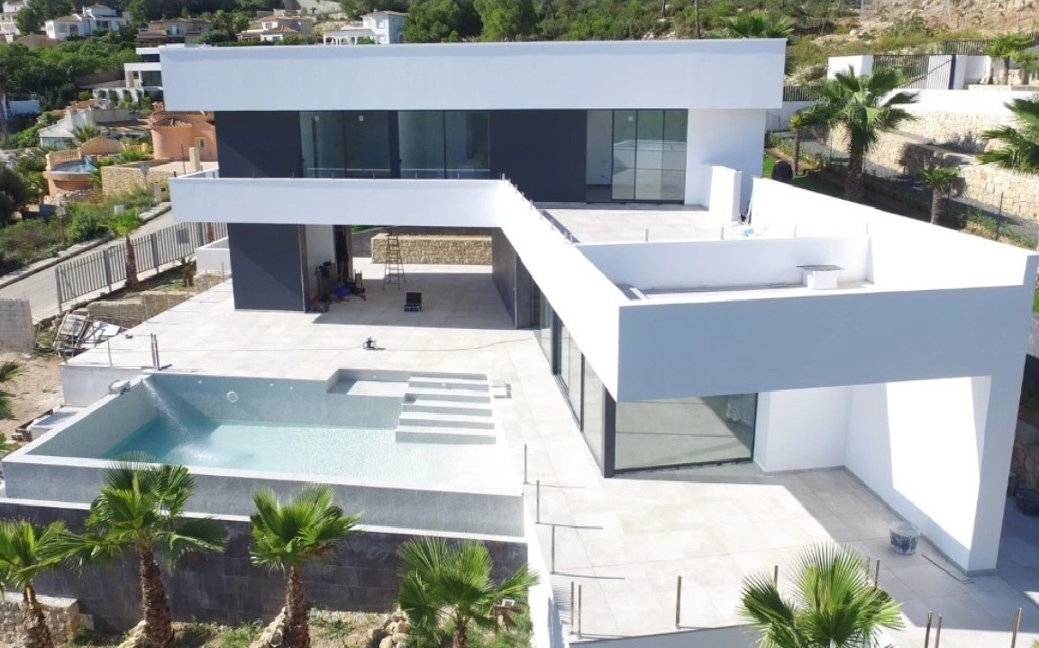 Stunning new build villa in Javea, just minutes from Arenal Beach. Enjoy sweeping sea views over green hills, with Ibiza visible on clear days. Features 3 double bedrooms, 3 bathrooms including master en-suite, open-plan living with modern kitchen, utility room, guest WC, and a covered terrace with BBQ next to the infinity pool. Extras: ducted AC, underfloor heating, landscaped gardens, irrigation, and double garage.